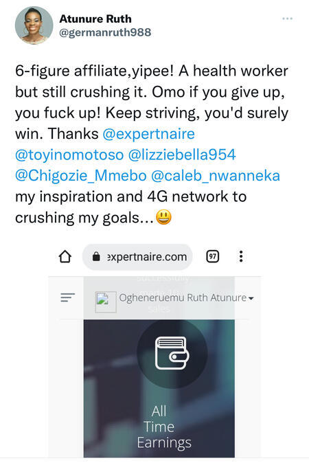 Why This Course On Affiliate Marketing?The major way an affiliate marketer makes money is when he/she records a sale.So, in a case you don’t have any idea at all on how to reach people who gonna buy, how will a sale be made?At this point, one may start saying the business isn’t working because no sale is coming.This particular barrier is what we’re solving with the 72IG Course on Expertnaire Affiliate marketing program.We don’t just allow you become an affiliate, we’re interested in seeing you succeed hence why a training is provided for you.With this training, IT IS NOT POSSIBLE for you not to record a sale. Even in your first week of implementation.I’ve gone through it. So I know what I’m talking about.